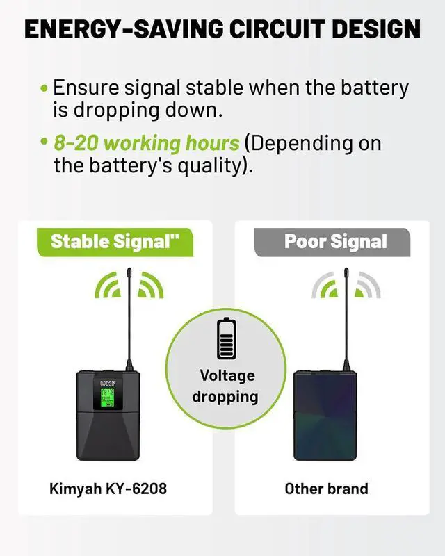 SELECTED MATERIAL AND WIDE APPLICATION: Good-quality material, the receiver is made of metal constructure, sturdy and durable, resistant to impact. Thick enough microphone lines ensure signal transmitting is stable. The system is equipped with 2 Lavalier mics and 2 headset mics, which expands your applications. You can use the wireless system in teaching, show recording and singing, etc