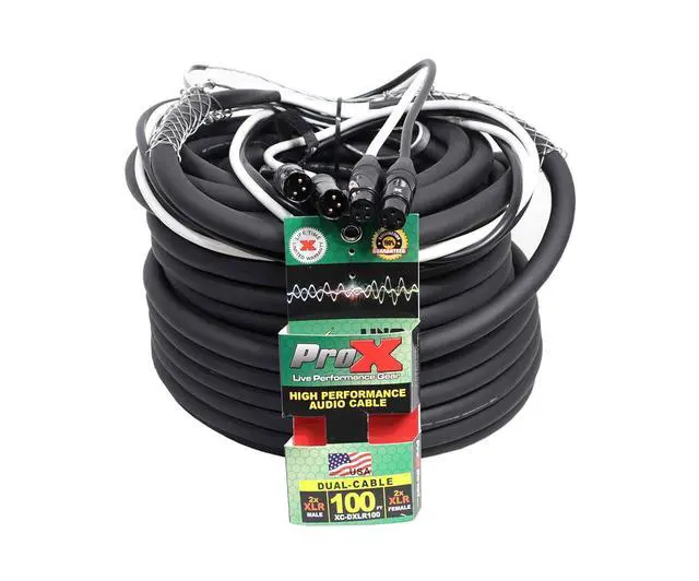 Features: ProX XC-DXLR100 100' Balanced Dual XLR-M to XLR-F High Performance Audio Cable.