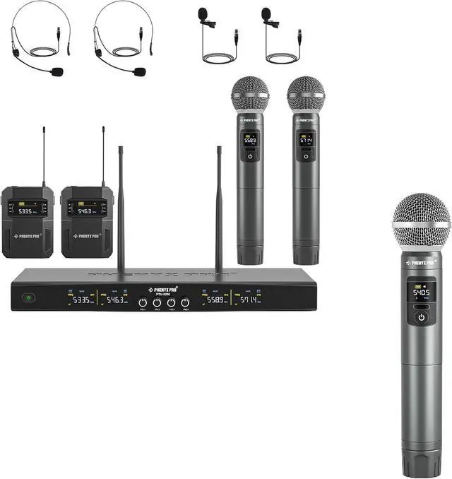 STURDY BUILD WITH DETAILSMetal UHF cordless microphone receiver and handheld microphones are designed to last, suitable for heavy use. Bodypack is built with high-quality components and comes with lapel microphone and headset microphone. Both dynamic handheld microphone and bodypack are equipped with a MUTE function for your convenience. This wireless headset lapel microphone system also comes with AA batteries