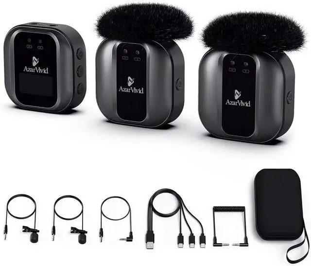 [- ]: AzarVivid wireless lavalier microphone can handle 2 transmitters and 1 receiver simultaneously. Which means it can record 2 people at once, ideal for face-to-face interviews, YouTube video and other two-person shoots.