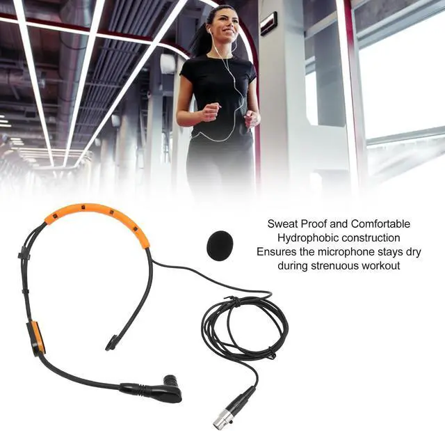 SWEAT PROOF AND COMFORTABLE: Headworn microphone with windscreen and hydrophobic fabric mesh ensures the microphone stays dry during strenuous workouts.