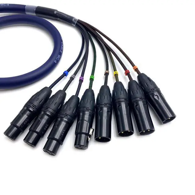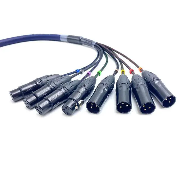 The DB25 to XLR cable has a DB25 25pin male connector on one side and an 8-channel 3 pin audio connector on the other side, 4 XLR male connector and 4 XLR female connector, Number tube 1234 is connected to the male, and number tube 5678 is connected to the female; Female is the input terminal, receiving signals; Male is the output terminal, sending signals