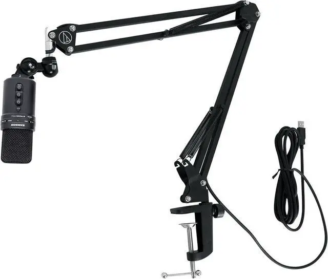 Package Includes: (1) SAMSON G-Track Pro Studio USB Condenser Microphone Mic+Built in Audio Interface. (1) Audio Technica Boom Arm for USB Microphone Recording/Streaming Computer Mics. Features: SAMSON G-Track Pro Studio USB Condenser Microphone w/ Built in Audio Interface. Element Type: Dual back electret condenser. Diaphragm Width/Thickness: 25mm/3 microns