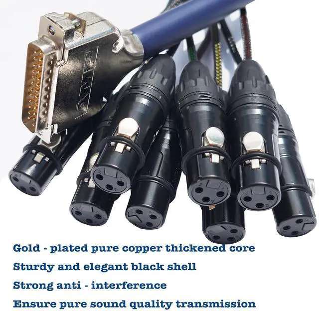 The 8 channel audio xlr snake cable features a DB25 male connector on one side and an 8 channel 3 pin XLR female connector on the other