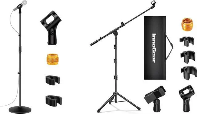 Versatile Height & Angle Adjustment Stage Stand: Adapt to any performance scenario with ease. The InnoGear mic stand features an adjustable height range from 34 inches to 60 inches, allowing you to customize the mic arm to your exact requirements. The user-friendly clutch ensures swift and precise height settings, while the 180° rotatable mic clip offers effortless angle adjustments. This ensures perfect microphone positioning every time, enhancing your performance with optimal sound capture.