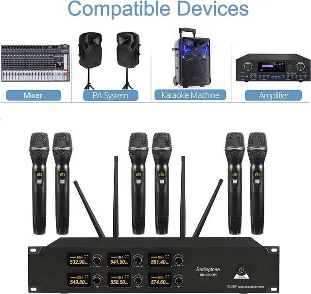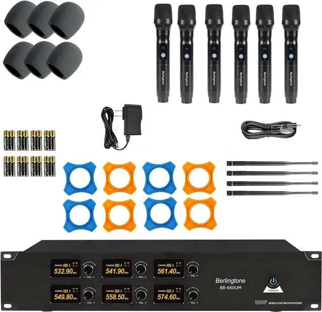 COMPLETE SYSTEM & WARRANTY SUPPORT Package includes 6 handheld dynamic microphones, UHF receiver, 4 antennas, audio cable, power adapter, anti-rolling rings, and 12 AA batteries. Backed by a 12-month manufacturer warranty with responsive customer support.