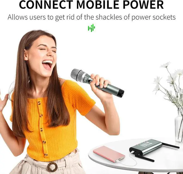 WIDE COMPATIBILITY: Easy setup wireless microphone system and convenient operation .The microphone will automatically and quickly synchronizes to the working channel of the receiver after power on. You can also connect to your amplifier, mixer, or other PA system.