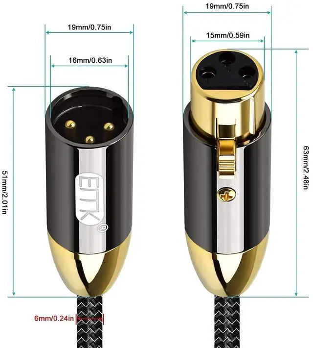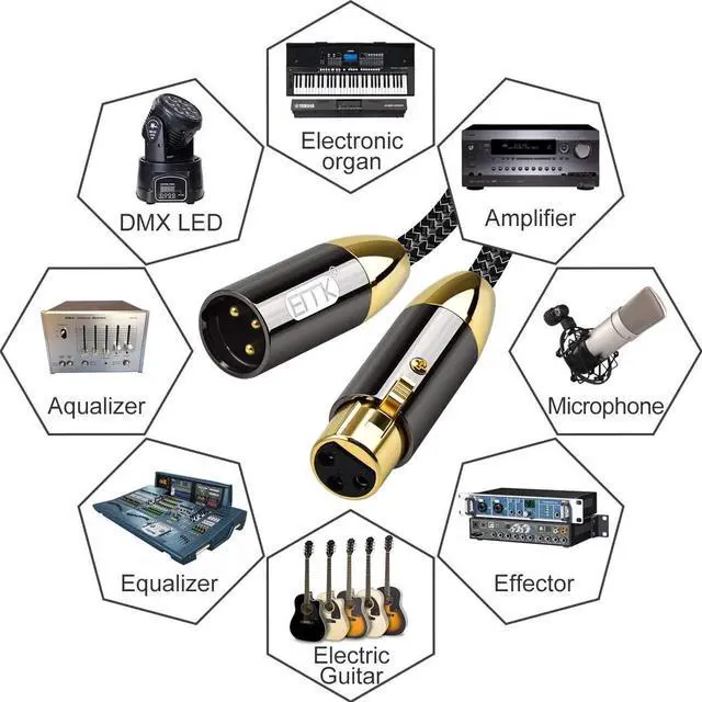 Versatile XLR male to female microphone cable is ideal for studio recording and live sound, providing reliable, high-quality connectivity for optimal audio performance. The microphone cable uses an advanced XLR male and XLR female connector. Designed to extend the connection between microphones and speaker systems, amplifiers, recorders, mixers, mixing boards, patch panels, preamps, stage lights or other devices equipped with mini XLR jacks.