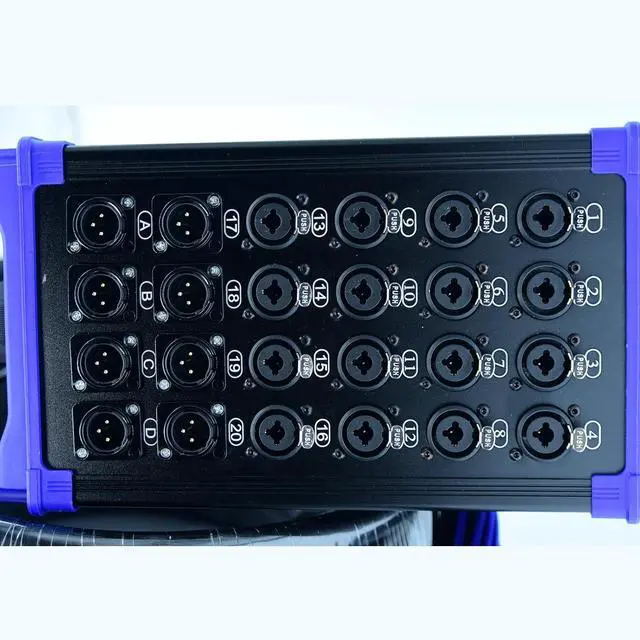 16 Send 8 Return Splitter: Connects 24 different channels to the stage box. The box connectors are XLR female (or 1/4 female), which is a 2-in-1 type socket.