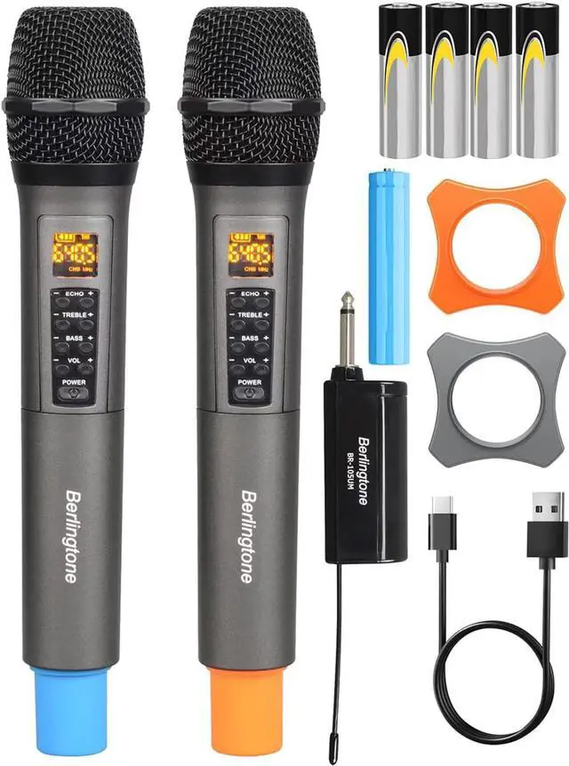 portable and professional dual dynamic microphone, plug and play, no extra setting. You can adjust echo, treble, bass, volume or switch channels on the handheld microphone at will, portable and convenient, eliminating the trouble of carrying the receiving system. comes with dual handheld wireless karaoke microphone, widely applied to conference, speech, web podcast, yoga instructor, church, get together, family party, opening ceremony, dancing instructor, promotion etc.