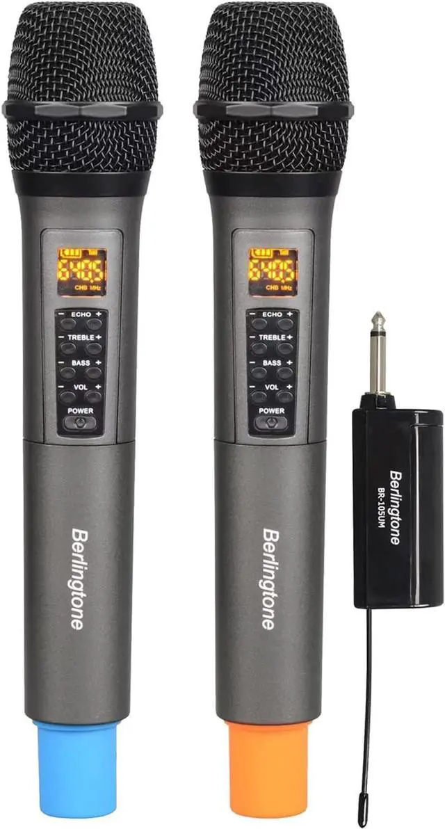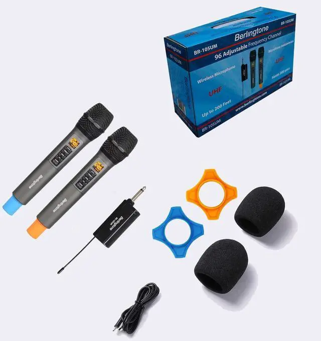 Professional UHF Wireless Karaoke Microphone System The microphones adopt fcc certified UHF frequency band, which provide the long transmission distance (Open Place: UHF distance 200ft, Frequency Response 30Hz-18kHz, Signal stability, No delay, No radiation, Anti-howling, Anti-jamming, Constant frequency