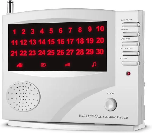 All functional buttons are front facing, which simplifies the set up of this caregiver/nurse call system no matter if it is installed on a wall or placed on a desk. Plug the paging system to power socket with AC adapter provided to power and keep 4 C type batteries aside as a backup.