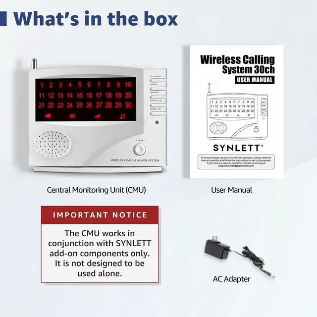 The SYNLETT wireless central monitoring unit receiver ONLY must be paired with SYNLETT components to function.
