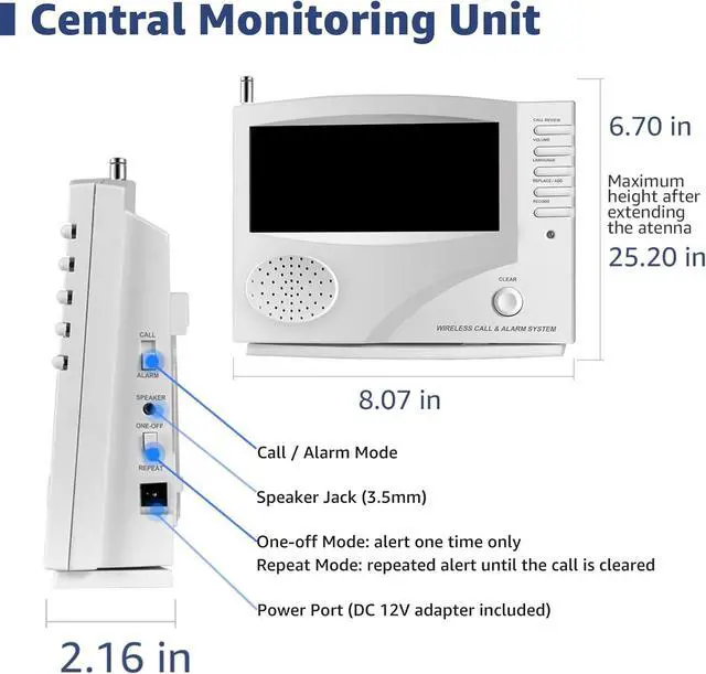 Extra call buttons, motion sensor, portable caregiver pager with LCD and other configuration are available purchase upon request separately.