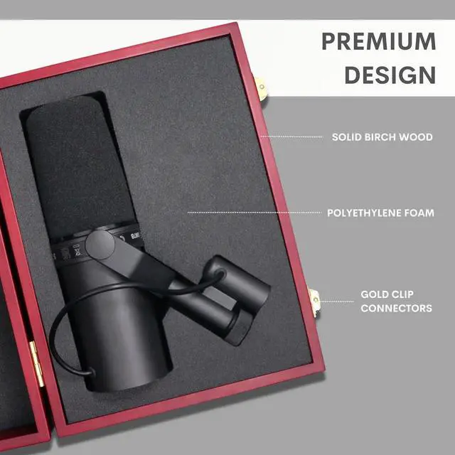 PREMIUM BIRCH WOOD CONSTRUCTION: This sturdy and durable Shure SM7B microphone case has a solid wood build exterior and it is interior has an impact absorbing form wall border to protect your microphone from sudden drops and impacts.