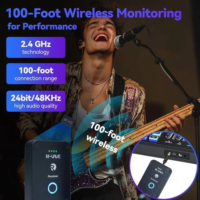 HIGH-DEF AUDIO QUALITY FOR MUSICIANS: Dont compromise on sound. Our IEMS delivers crystal-clear 24bit/48KHz audio wirelessly, so you enjoy a rich, immersive listening experience.