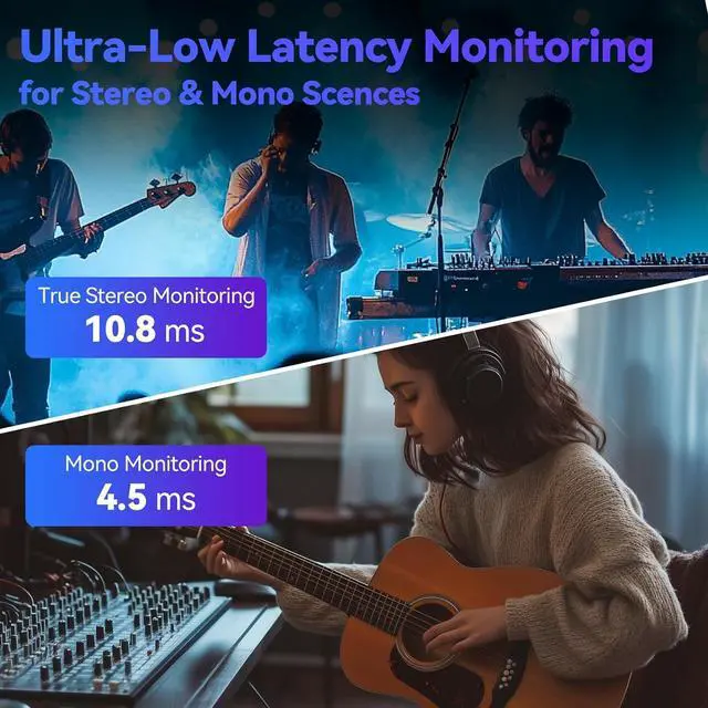 ULTRA-LOW LATENCY MONITORING DURING LIVE PERFORMANCE AND PODCASTS: Real-time audio matters. Our IEMS delivers less than 10.8ms latency in stereo and under 4.5ms in mono, giving you a seamless experience whether youre on stage or recording a podcast.