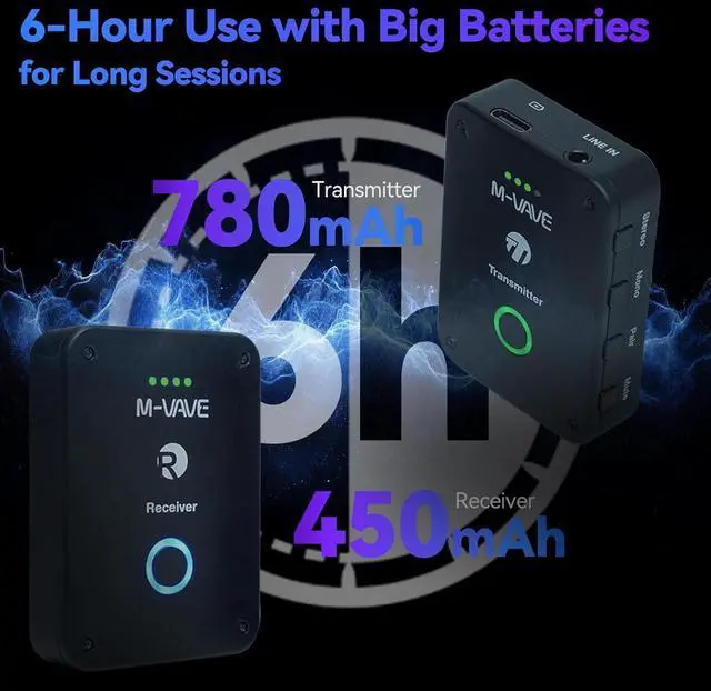 POWERFUL BATTERY IN COMPACT BODY For LONG SESSIONS: Small enough to take anywhere, yet packed with a 450mAh battery in the receiver and 780mAh in the transmitter, offering up to 6 hours of uninterrupted use. Note: Charging while using may cause interference.