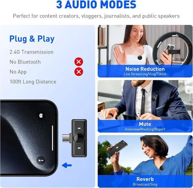 Full Compatibility: APETOO-191 wireless lavalier mini microphone come with 3 receivers (USB-C/Lightning/USB-A), which you plug into most smartphones, tablets, laptops, PCs and camera, ideal for Tiktok, vloggers, live streaming, podcasts, journalists, and interviews.