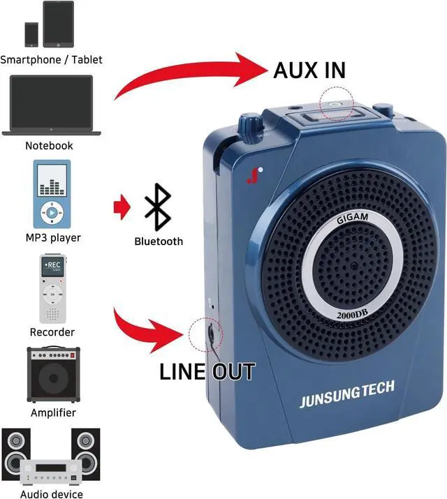 Bluetooth, 3.5mm AUX and LINE OUT : Connect with laptop, MP3 player, Smartphone and other devices