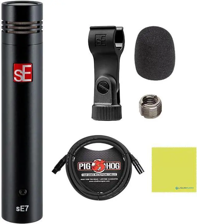 INCLUDES: sE Electronics sE7 Small-diaphragm Condenser Microphone , a Pig Hog PHM10 8mm Microphone Cable and a Liquid Audio Polishing Cloth.
