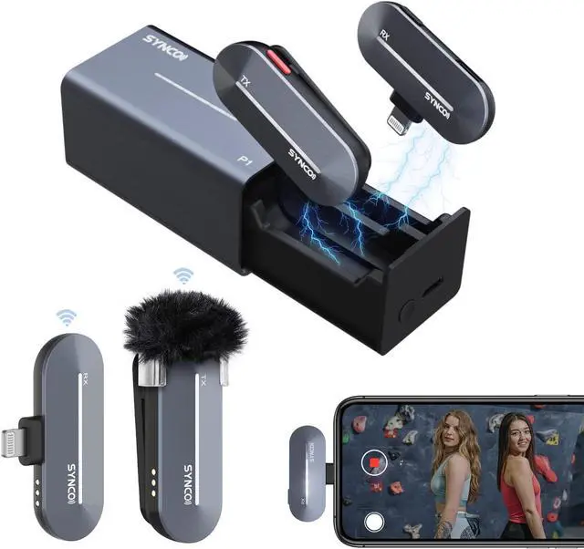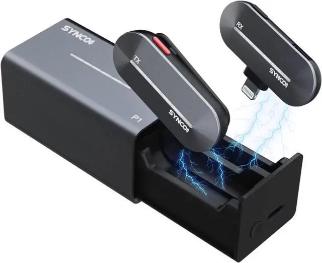 Contact Pairing , Plug and PlayThe charging drawer of the SYNCO P1 P1L wireless lavalier iPhone microphone with contact pairing makes pairing easier and rapider. Just pull the drawer out, press one button for 3 seconds, plug the RX into your TYPE-C device and start hassle-free, cable-free recording for your streaming.
