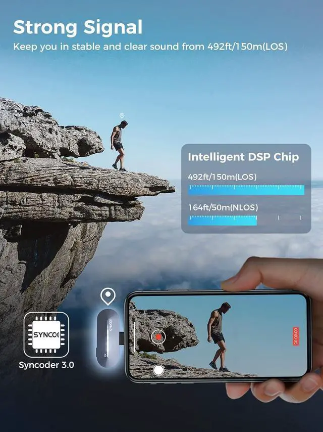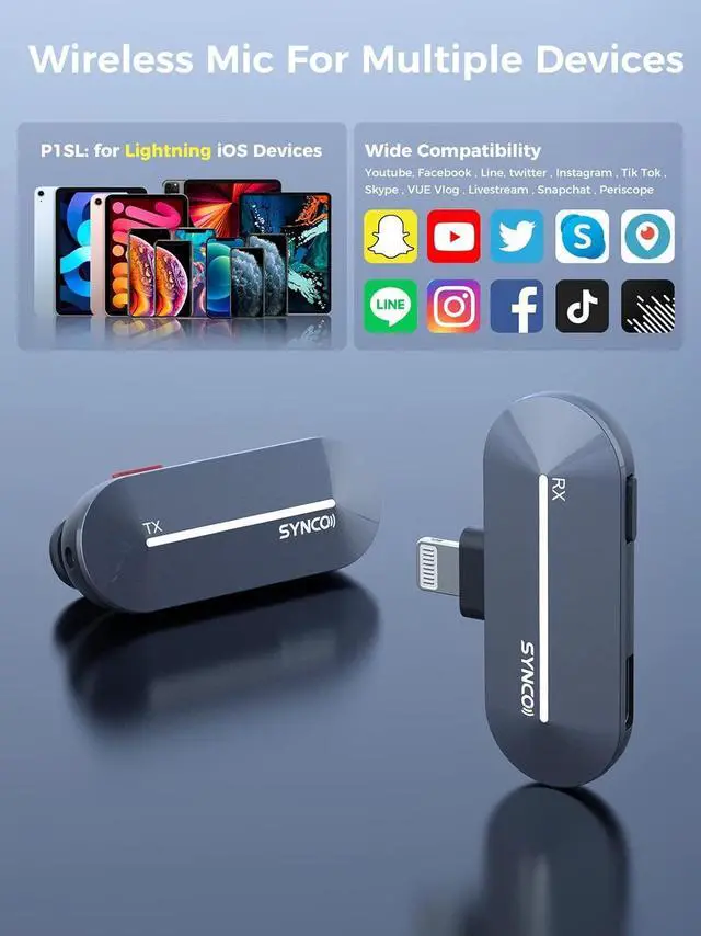 Obstacle-Free and High-Fidelity TransmissionFollowing Syncoder 3.0 and intelligent DSP chip, SYNCO P1 P1L 2.4Ghz wireless lavalier microphone for iPhone iPad devices keeps you in stable and clear sound from 492ft/150m(LOS area), filters out low-frequency noise and reproduces faithful and clean voices.