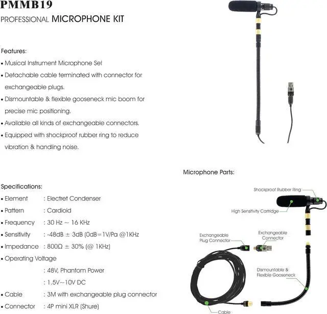 Clip-On microphone for Saxophone/Trumpet that compatible with Shure, compatible with Sennheiser, compatible with Audio Technica, compatible with AKG bodypack transmitter.