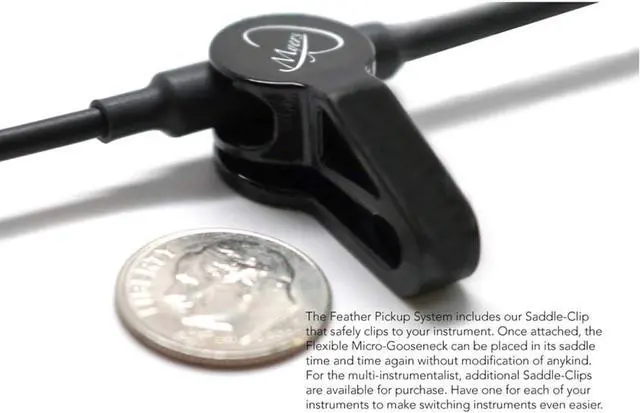 THE FEATHER-2 The Light-Weight Powerhouse!!! NEW from MYERS PICKUPS: Versatile, Multi-Instrument, Powered Pickup! The smallest (all-in-one) active/preamp pickup on the market today! Complete out of the box, plug in and play! Mounting hardware includes the NEW patented SADDLE-CLIP! Instantly turn your instrument into an acoustic/electric instrument with VOLUME! Compatible with almost any musical instrument! Made in the USA.