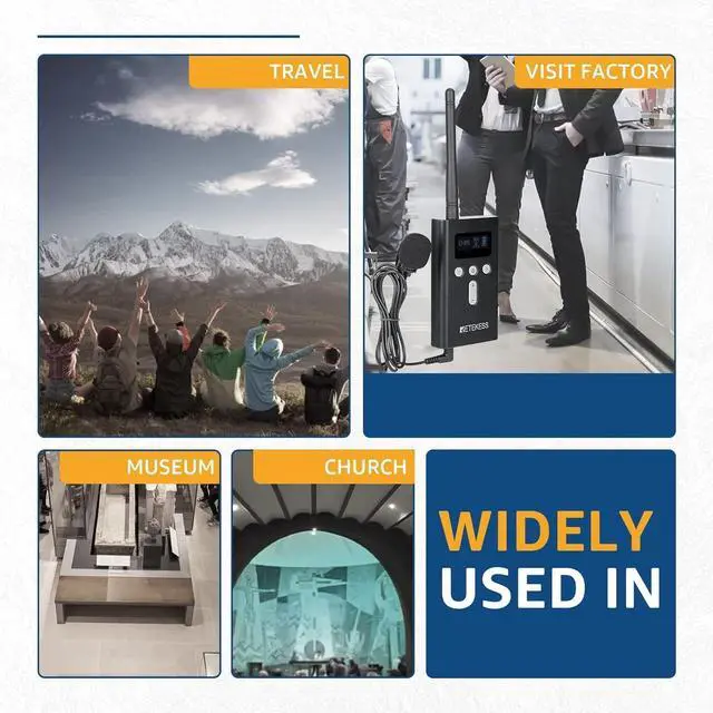 Longer transmission distance; working range up to 100m/328ft in open area; receivers do not have to be clustered around the transmitter; useful information can be heard clearly; Note: It can only be used with Retekess T130S transmitter