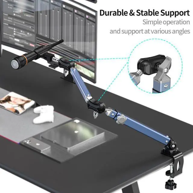 Adjustable Desk Mic Arm: The angle and length of the microphone arm are adjustable, allowing for flexible positioning to achieve optimal sound quality. It is suitable for podcasting, video gaming, live streaming, and studio audio recording.