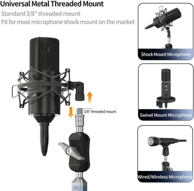 Function: The desk mount allows for easy and secure installation on any desk or table. The foldable design makes it convenient to store when not in use. The 3/8'' to 5/8'' screw adapter makes it compatible with most microphones.