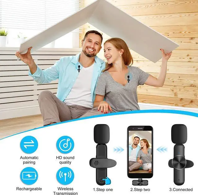 Plug and Play & Auto-PairingNo need for any app and bluetooth. No messy cables and poor noise reduction, just plug the receiver into your phone, turn on the Wireless microphone, and it will automatically match up immediately. instantly starting a professional noise-canceling recording experience.