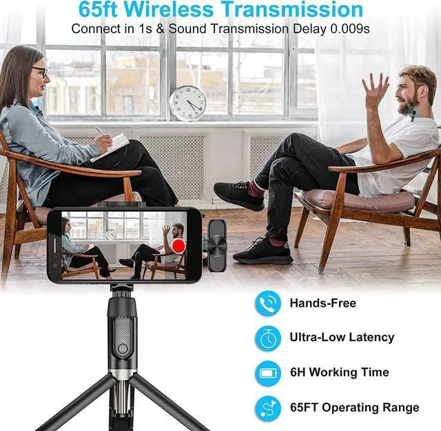 Long Working Time & Effective DistanceWireless microphone transmitter has built-in 800mAh rechargeable battery with working time up to 8 hours. 65ft barrier-free effective distance & 0.009s delay in transmission allow you to move around. Ideal for Youtube / Vlog video recording, Facebook / TikTok Live Stream, Interview, Church, Presentation, virtual conference, etc.