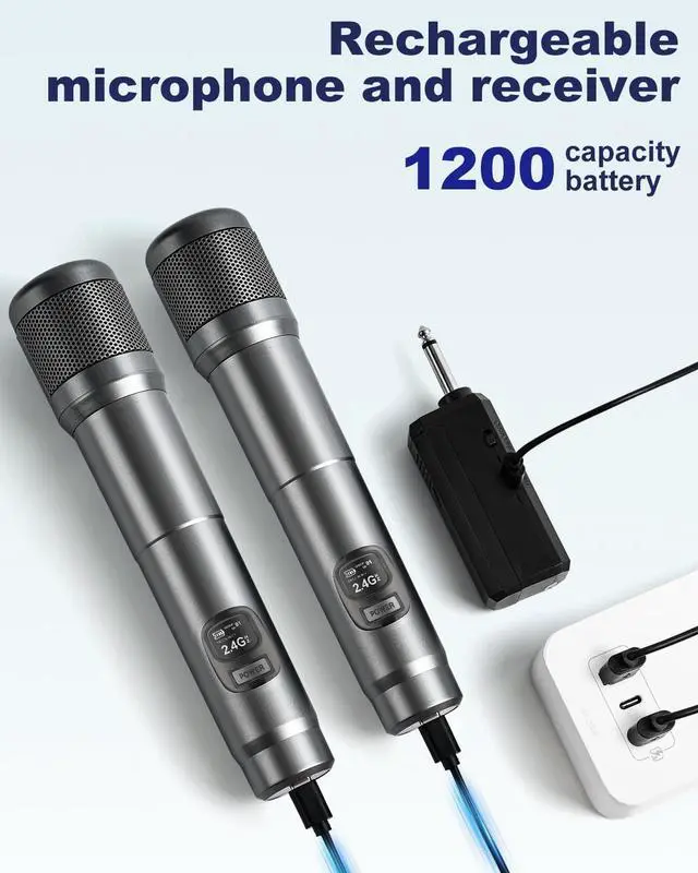 Sing All Night: The wireless microphone is equipped with a high-capacity battery. Whether you are hosting an all-night party, an all-day picnic, or any event, this long-lasting performance ensures that your party is full of endless fun. Both the wireless microphone and receiver use a USB-C charging port, and both the microphone and receiver can be charged (3-5 hours). No need to buy batteries again and again.