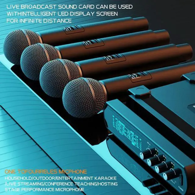 High-Quality Cordless Microphone Set: This 2.4G wireless handheld microphone comes with four microphones and a receiver, providing professional-grade sound for various applications such as live performances, karaoke, outdoor events, and conferences.