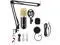 Professional Recording Studio Equipment: The condenser microphone bundle includes a BM-800 microphone, a metal shock mount for microphone, a live sound card, an adjustable mic suspension scissor arm, a double-layer pop filter for mic, and anti-wind foam cap, and a power cable.