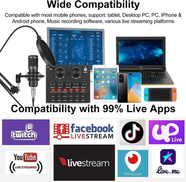 Powerful Compatibility The Audio interface has strong compatibility, supporting smartphones, PCs, PlayStations (PS4, Xbox...), and more. It can be compatible with Windows, iOS, Android, Mac OS, Chrome OS, and more. This podcast device kit meets the needs of most scenarios. Free drive, plug and play.