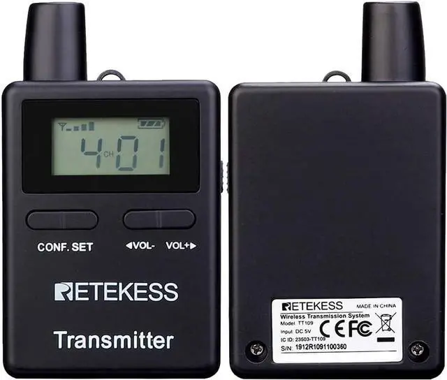 Long working distance up to 180 m / 590 ft; ultra-long standby rechargeable battery; the built-in 1500mAh lithium rechargeable battery in the transmitter can be used for 8 hours; and the built-in 1000mAh lithium battery in the receiver can be used for 18 hours