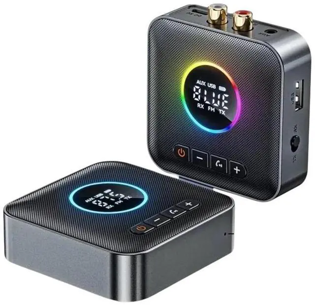 M10 RGB Colorful Light BIIuetuth 5.4 Audio Signal Adapter Signal Sende Transmlttier FiM USB 3.5MM AURX Stereo HiFi Music Wirreless Adapter with Mic
