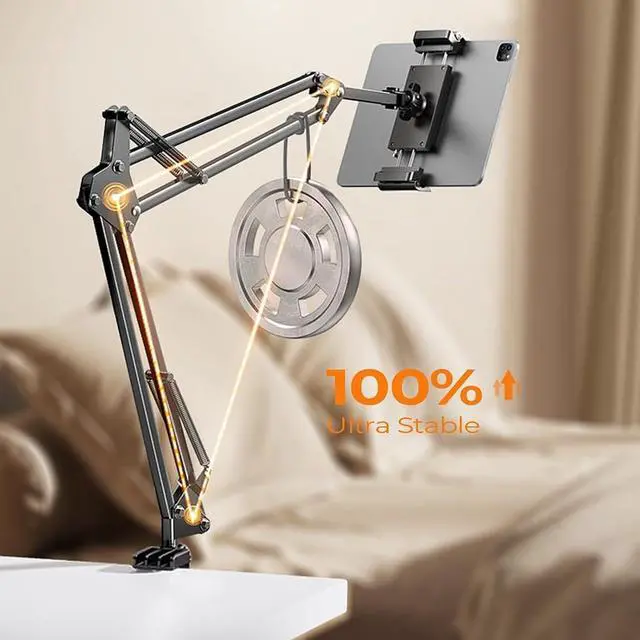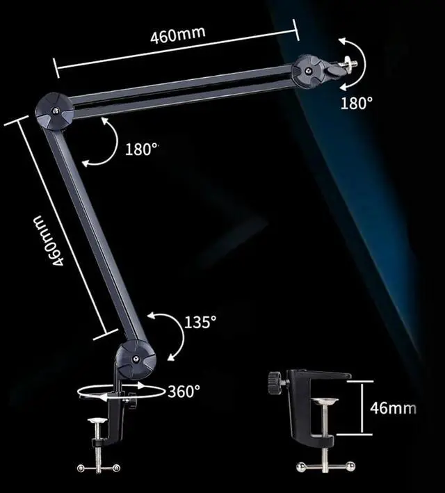 Foldable microphone stand, reinforced cantilever stand, with build-in metal positioning wheel.