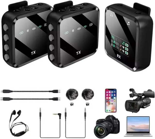 Wirreless Lavalier Microphone System BIIuetuth Audio Video Voice Recording Mic for Phone Androld Mobile Phone Interview Camera