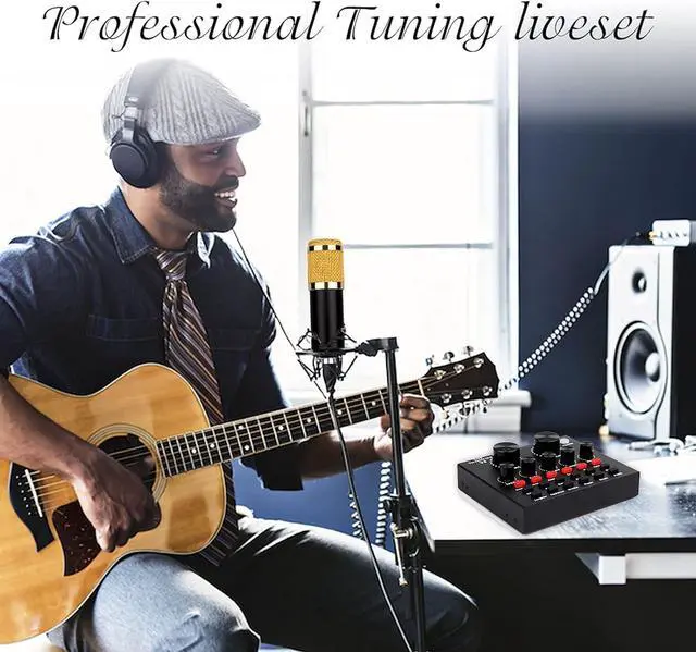 Professional Recording Studio Equipment Equiped with BM-800 microphone, Shock mount, Pop filter, Mic adjustable suspension scissor arm stand, Anti-wind foam Cap, Power cable, Sound card.