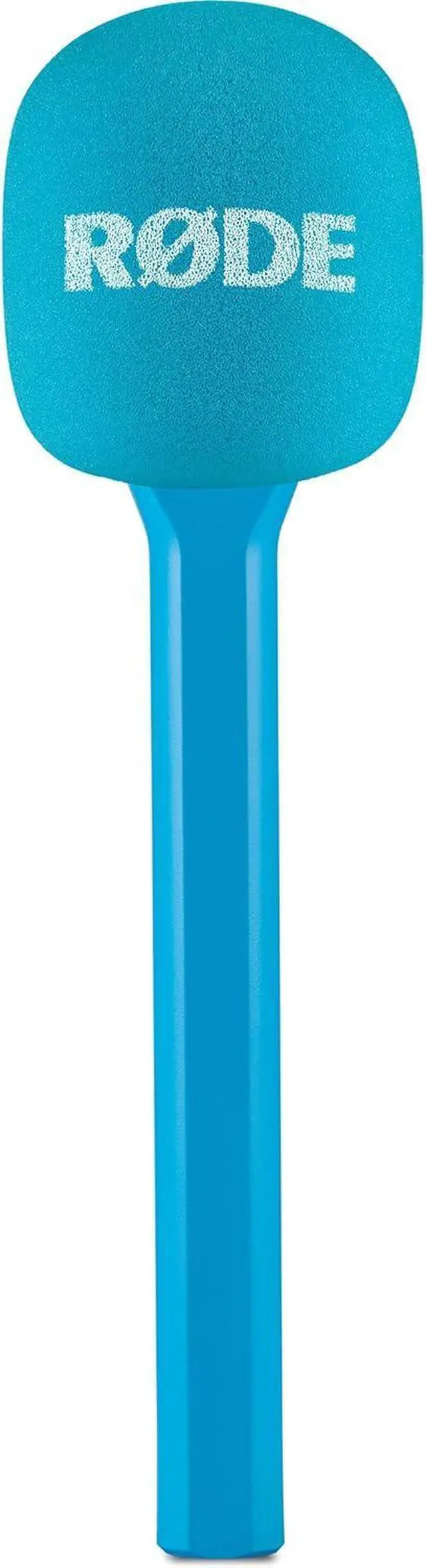 Two blue Interview GO adapters convert transmitters into handheld microphones