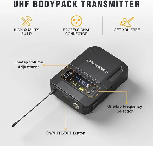 25 ADJUSTABLE FREQUENCY: State-of-the-art circuitry designs 25 adjustable frequency sets for this microfono inalambrico set in 500MHz band, allowing up to 25 units to use at the same time without interference. You can also enjoy the freedom of changing frequency if preset frequency failed. Operation distance is up to 200ft in open space line of sight