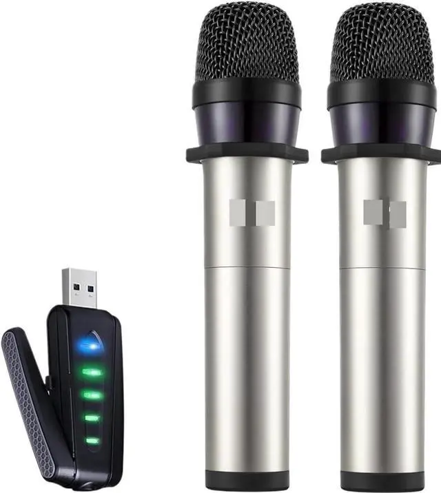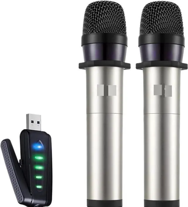 USB RECHARGEABLE DUAL HANDHELD MIC SYSTEM: designed specifically for computer use, featuring two handheld microphones paired with a wireless setup, and equipped with USB charging functionality that allows easy power replenishment via common computer ports or compatible chargers, eliminating the need for frequent battery replacements and ensuring long-term usability for various daily or professional activities.