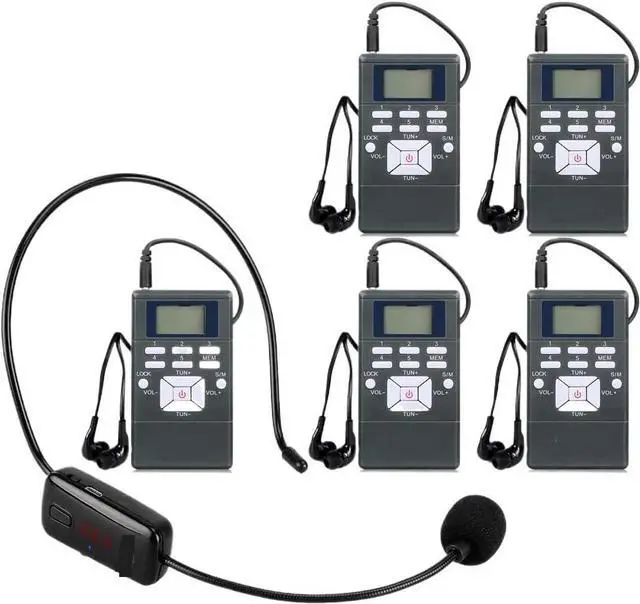 SYSTEM COMPATIBILITY FOR TARGET SCENARIOS: this wireless microphone headphone system, consisting of 1 transmitter and 5 radio receivers, is specifically tailored for auxiliary listening needs in churches, training sessions, and schools. it aligns with the acoustic and usage demands of these environments, ensuring that audio transmission meets the requirements of large spaces in churches, interactive training settings, and classroom learning.