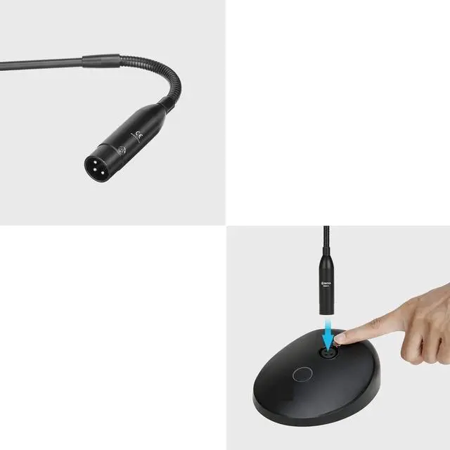 PODIUM MIC WITH BASE & LED INDICATOR: comes with a stable base that keeps the mic securely positioned on podiums, preventing accidental tipping during lectures or meetings. The built-in LED indicator clearly shows the mics active status (on/off), helping users and attendees quickly confirm if audio is being captured.