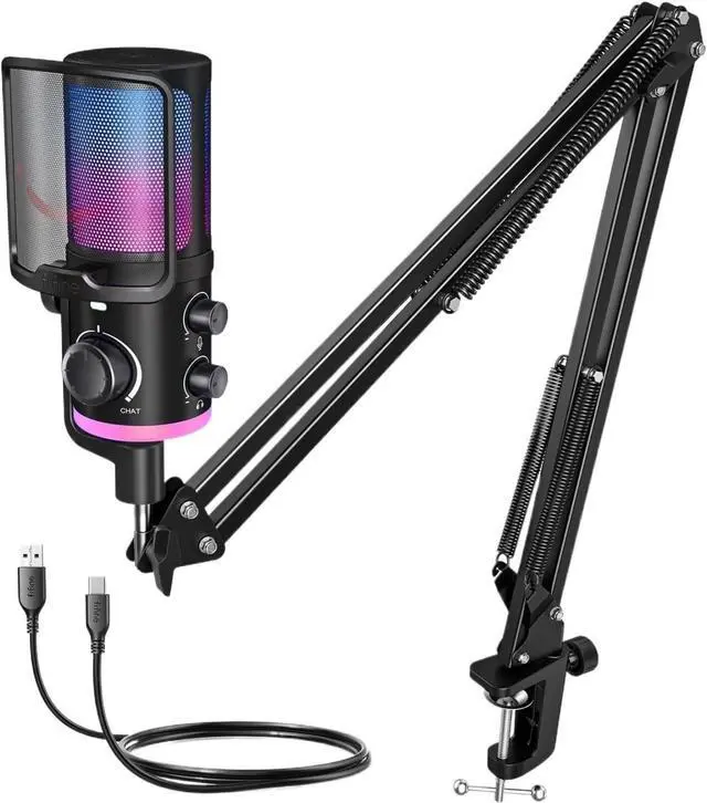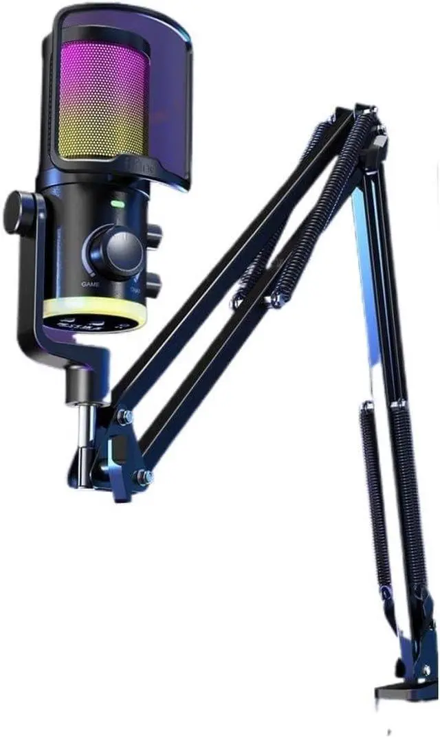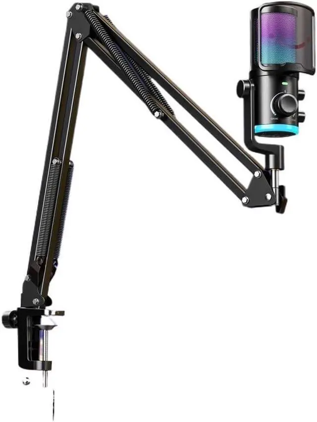 INCLUDED BOOM ARM & POP FILTER: comes with a flexible boom arm for precise positioningusers can adjust height, angle, and distance to capture optimal sound, whether sitting at a desk or leaning back during gameplay. The boom arm frees up desk space and keeps the microphone steady, avoiding accidental knocks that cause audio disruptions.