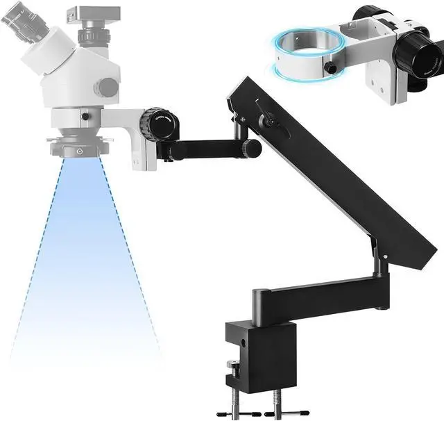 Broad Compatibility for Multiple Scopes: Designed as a universal microscope stand, it accommodates both binocular and trinocular models, with a versatile swing arm for smooth and effortless specimen examination and manipulation.